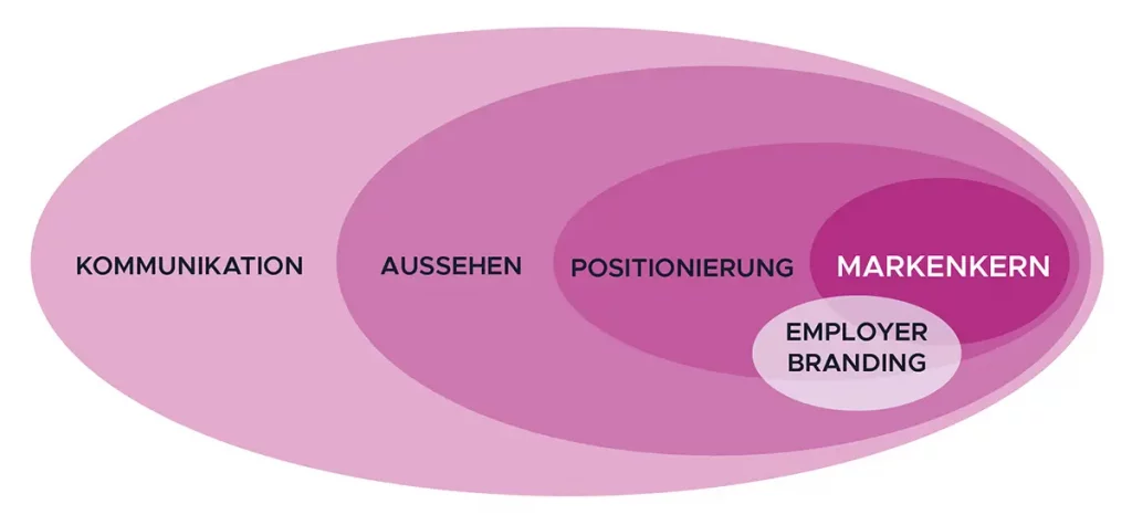 Die Attraktivität einer Organisation wirkt anziehend auf alle relevanten Stakeholder. Für das Behalten und Gewinnen von Beschäftigten ist das Employer Branding das wichtigste Element. Doch Employer Branding basiert auf einer Brandindstrategie und ist Teil einer Markenarchitektur, fokussiert auf eine bestimmte Zielgruppe, den Beschäftigten. Die Werte, Haltung, Stil und das Leistungsportfolio, das sich in einer Markenarchitektur manifestiert, wird beim Employer Branding lediglich geschärft und fokussiert. Ziel ist es, die Positionierung der Organisation als Arbeitgeber für Bestehende und neue Mitarbeitende klar, transparent und emotional zu transportieren auf allen relevanten Kanälen.